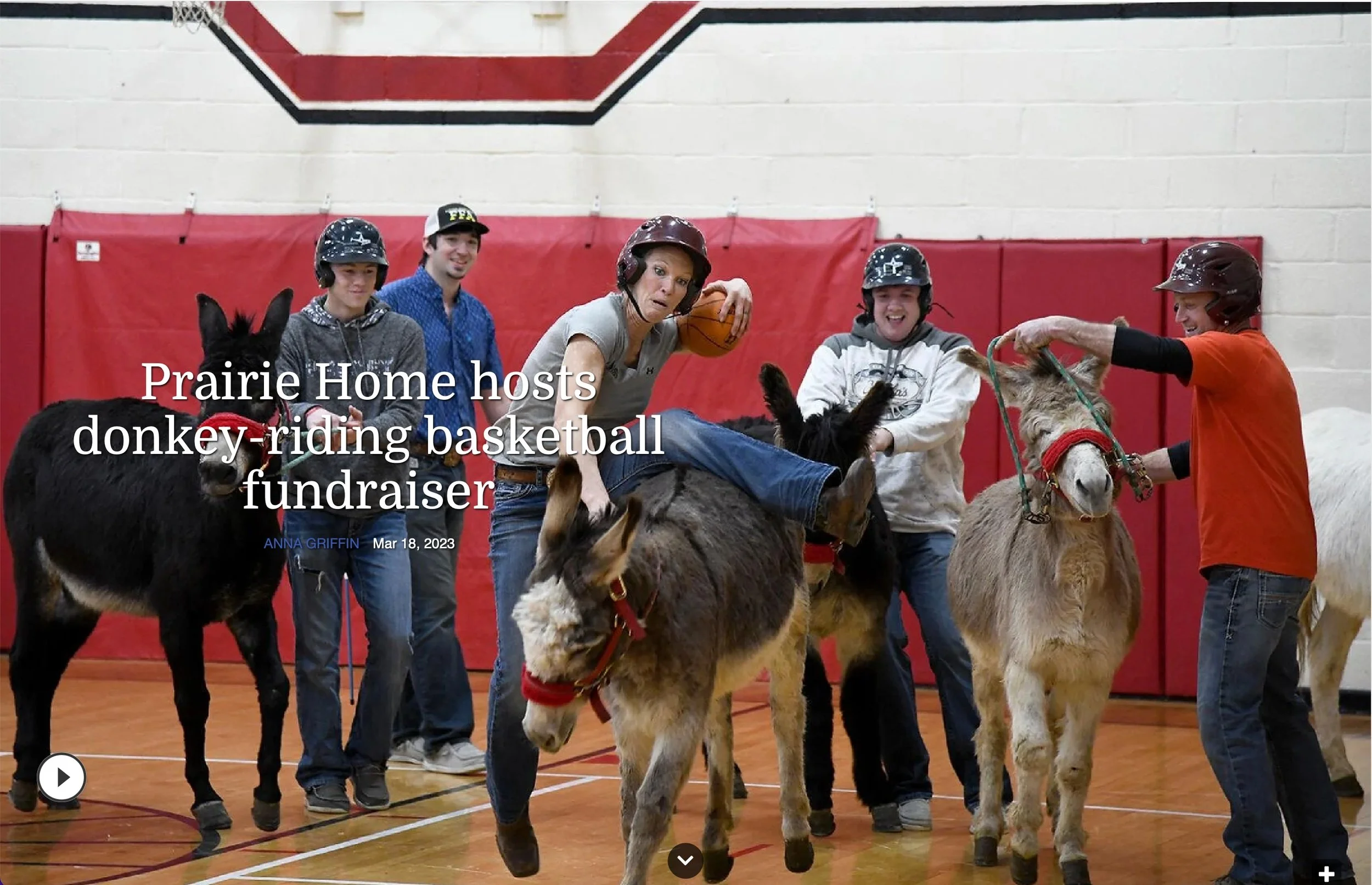 On a busy Saturday full of sports with March Madness, high school post-season and more, we had room in our budget for a fun assignment involving a small town of less than 300 people enjoying a new tradition involving donkeys in their local school gymnasium. As the editor on shift, I was in charge of selecting, toning and cropping the images from our photographer Anna Griffin. I also uploaded these to the Columbia Missourian website and published them on deadline.