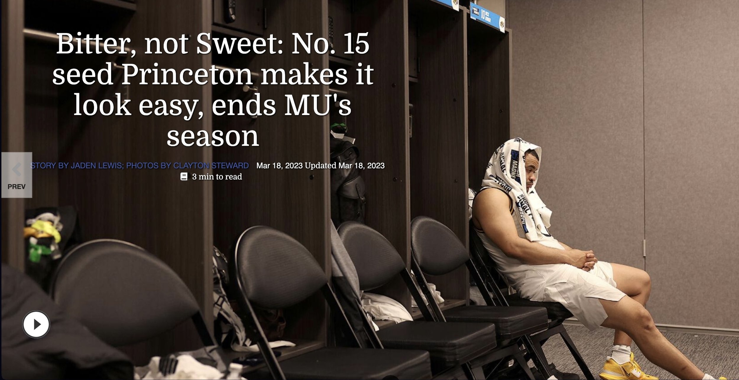 In March 2023, the Mizzou Men's Basketball team made it to the Sweet 16 round of the March Madness Tournament in Sacramento, CA. I was the sole editor in charge of communicating with our photographer Clayton Steward, receiving photos and scores in real time. I collaborated with the sports desk to produce the most accurate and up-to-date coverage as possible. I selected, toned and uploaded images to the Columbia Missourian website and prepared them for the print edition for the next day.