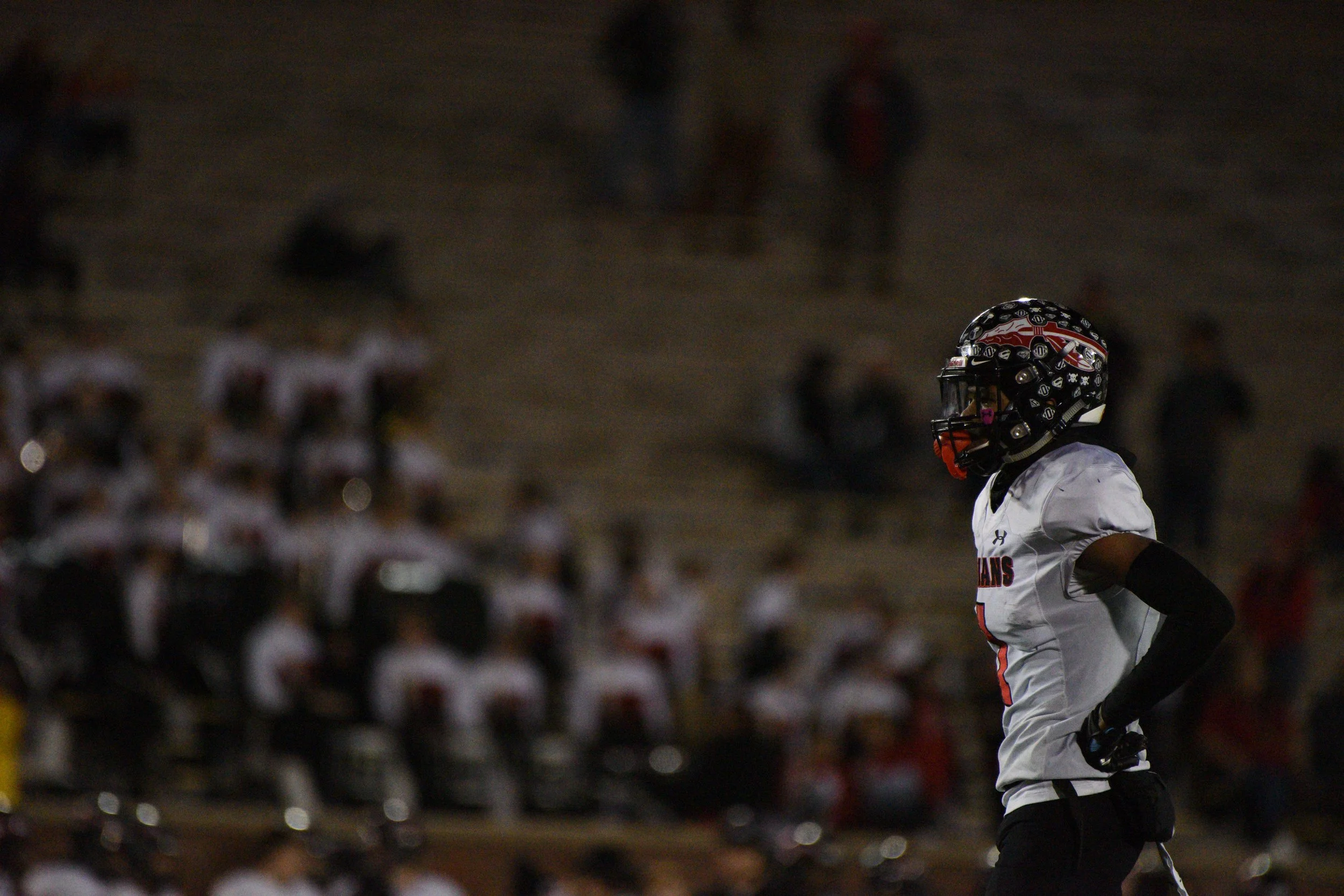 Fort Osage wide receiver Larenzo Fenner reacts with frustration in the first half of the Class 5 MSHSAA championship game on Friday Dec. 2 at Memorial Stadium. Fort Osage trailed by 28 points at halftime.