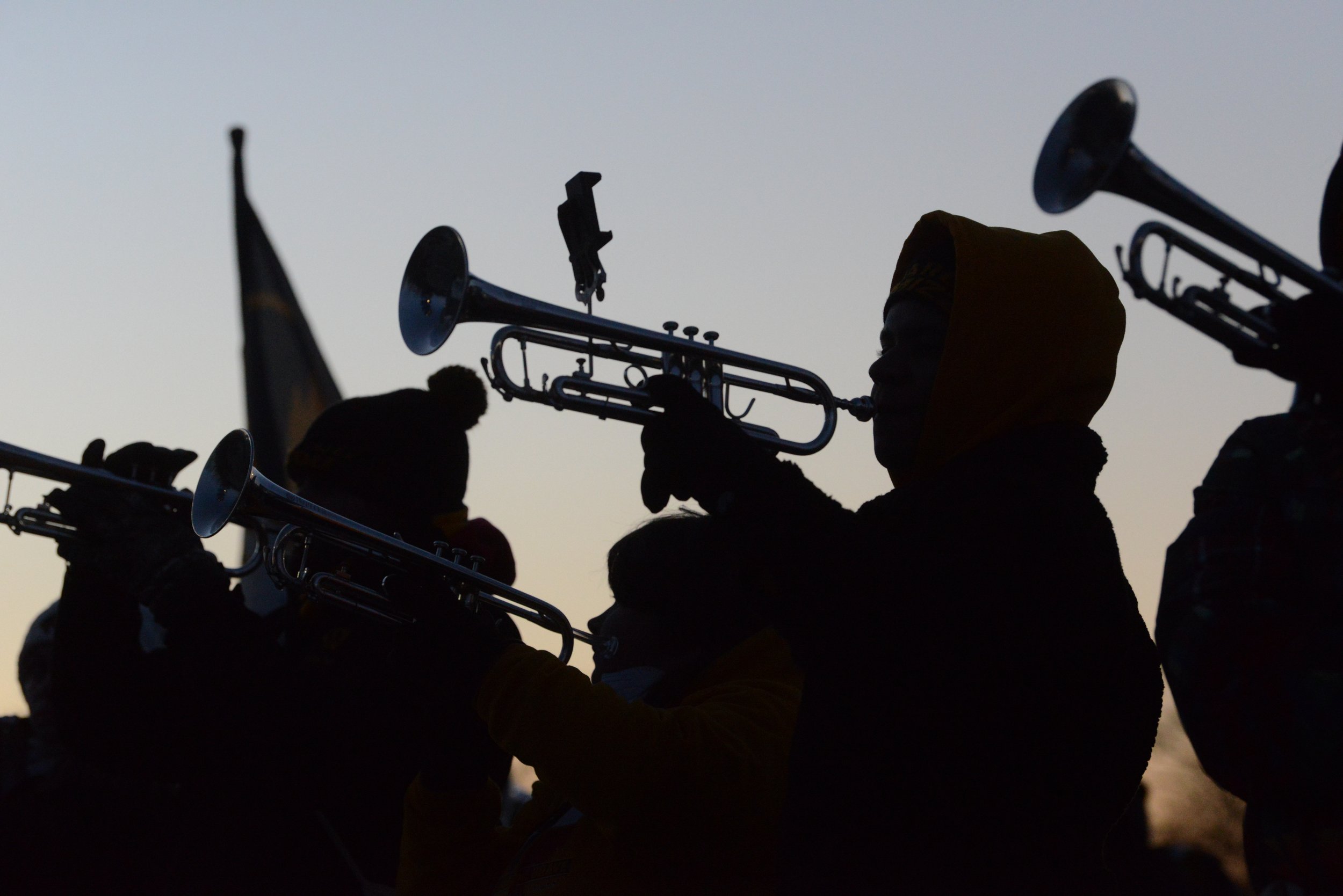 Trumpet players march in the TV spot formation on Friday Nov. 18, 2022 at the Marching Mizzou Practice Field during practice for the 96th Annual Macy’s Thanksgiving Day Parade in New York City. It is the first appearance of Marching Mizzou in the Macy’s Thanksgiving Parade.