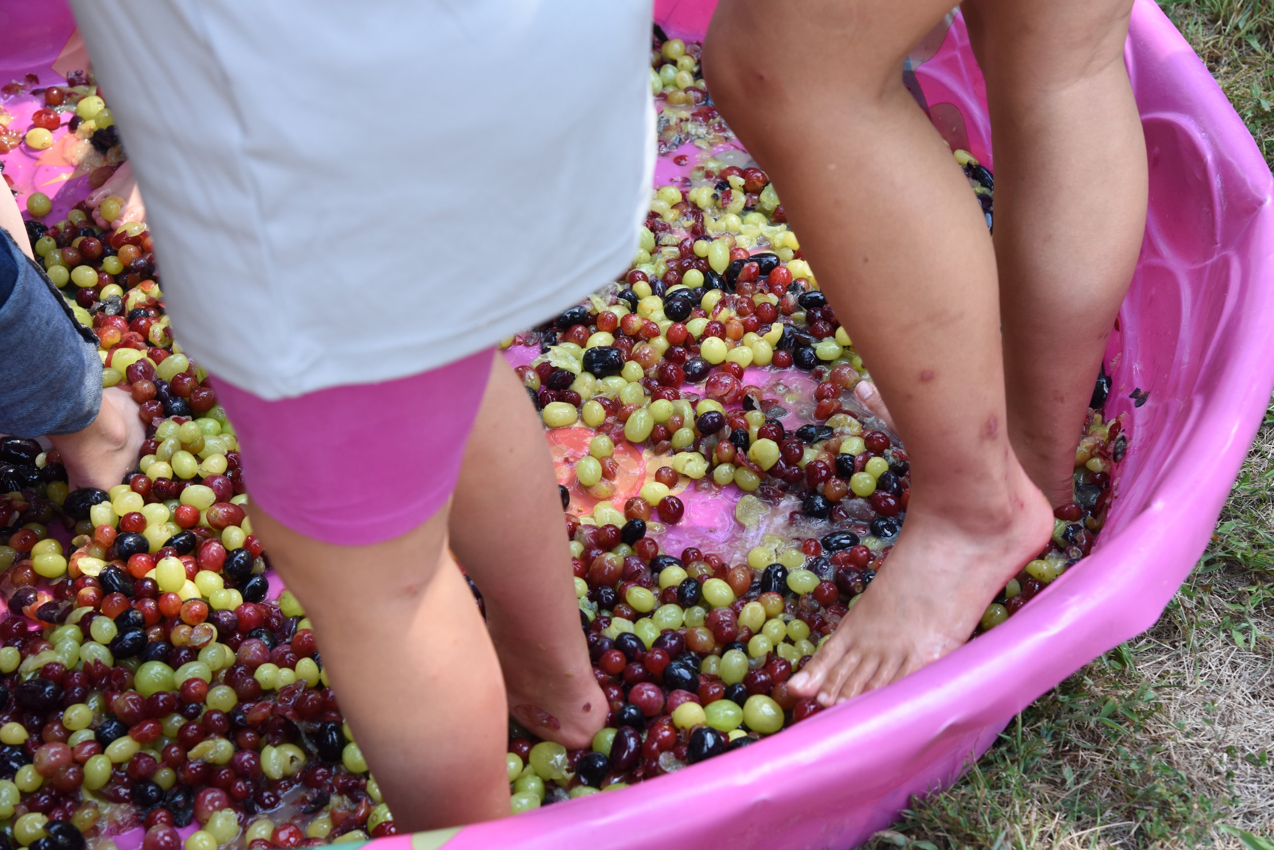 Attendees smash grapes Saturday Sep. 3, 2022 at the Harvest Homecoming Festival. “It physically feels icky, but spiritually it’s amazing,” said Kerry Lynn, former board member of the Oak Spirit Sanctuary.